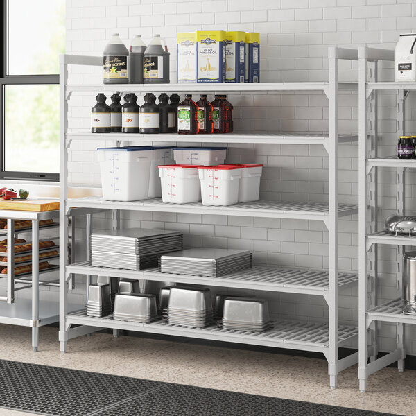 With vented shelves to provide optimum air flow and Camguard antimicrobial coating to keep stored items clean, this vented shelving system comes with all of the features you expect in a Camshelving® product. This shelving unit includes (4) 72" posts, (5) 24" x 72" shelves, 10 traverses, pre-installed post connectors and wedges, and matching dovetails. You'll have everything you need to start building this versatile and efficient shelving system right out of the box.