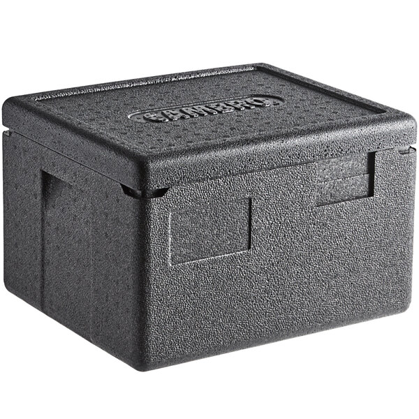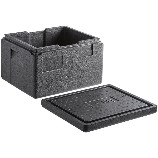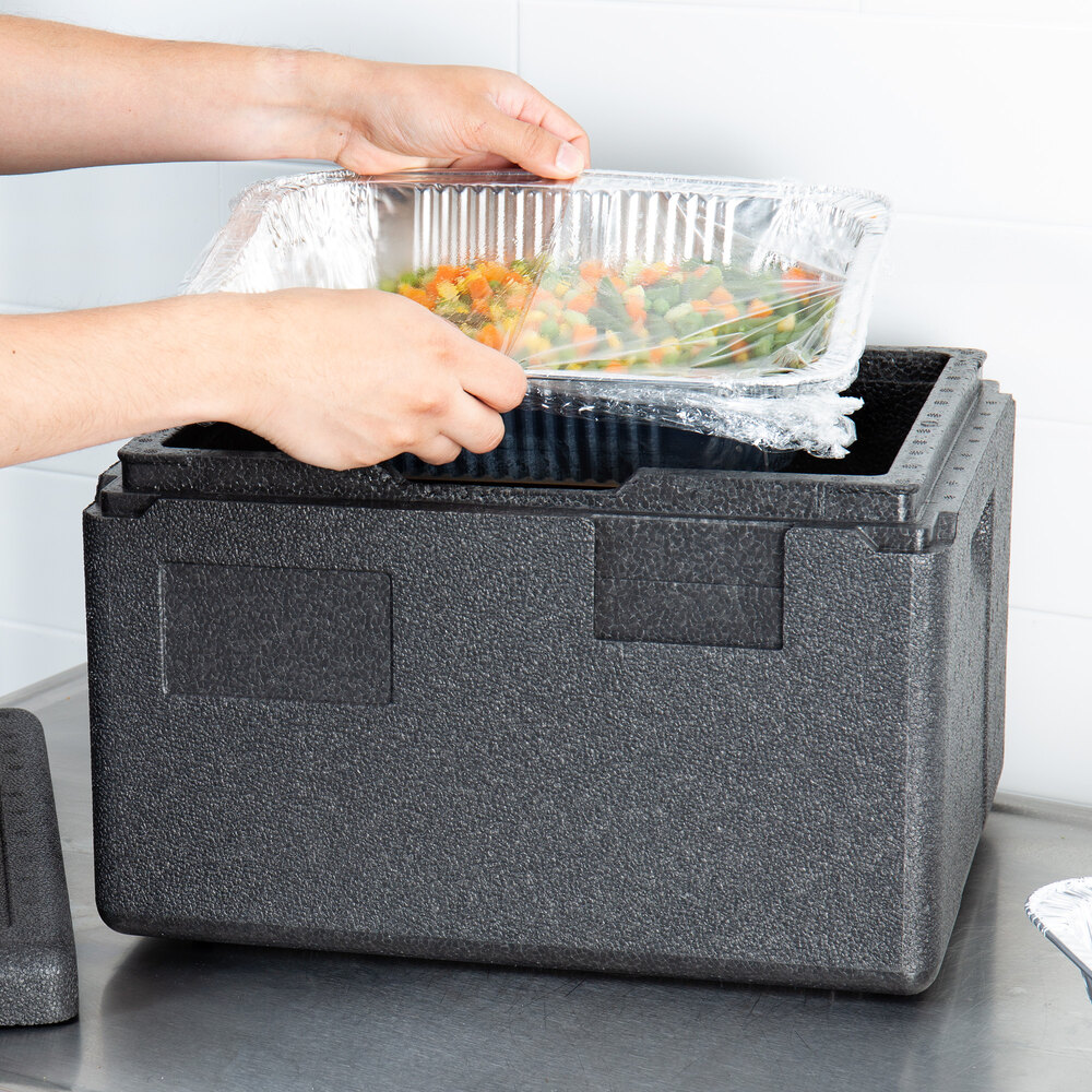 Light weight alternative to the traditional Cambro food pan carriers. Just note do not put them close to a heat source or put a smoking hot pan on or in them. They do melt. My staff prefers using these boxes because they are feather light and look very professional compared to coolers for catering.