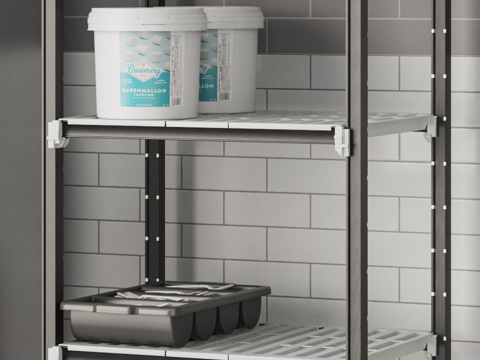 In addition, the vented shelf design promotes greater air circulation and product visibility which will come in handy in refrigerated storage applications.