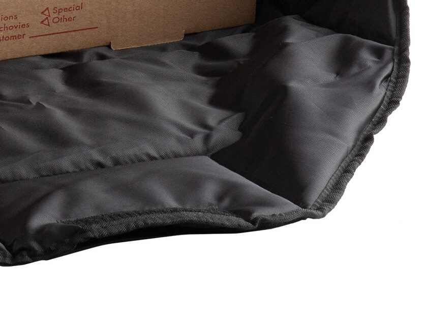 This insulated black pizza delivery go bag is a breeze for our employees to use. Its handles help keep product centered in the bag so there is no slipping.
