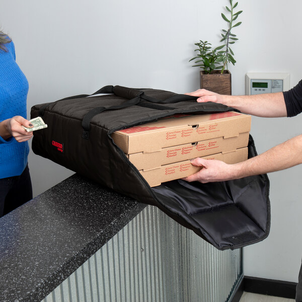 Try this Cambro GBP318110 Customizable Insulated Black Pizza Delivery GoBag® - Holds up to (3) 18" or (4) 16" Pizza Boxes instead! With similar benefits and features, this item is an ideal alternative to your current item.