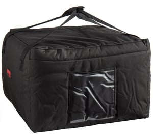 This insulated black pizza delivery go bag is a breeze for our employees to use. Its handles help keep product centered in the bag so there is no slipping.