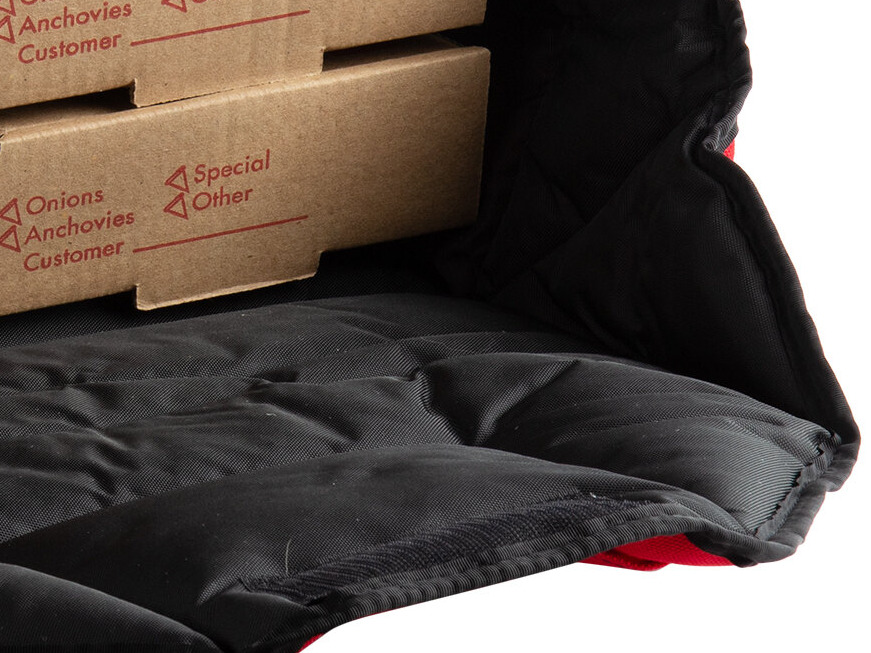 Nice material on this 2-18 inch pizza bag. Well balanced bad, with material thick enough not to fold if carrying smaller pizzas. Used 3 14’s pizzas and 20 minutes later the pizzas were still hot to touch. Good pizza bags, will buy again.