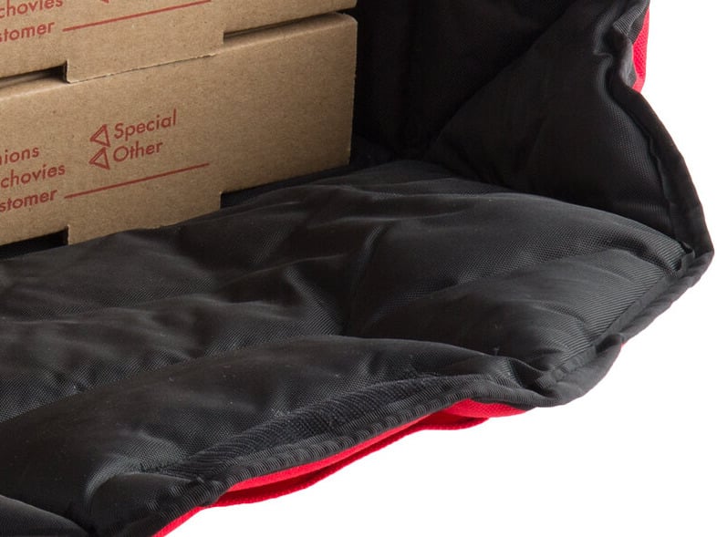 Nice material on this 2-18 inch pizza bag. Well balanced bad, with material thick enough not to fold if carrying smaller pizzas. Used 3 14’s pizzas and 20 minutes later the pizzas were still hot to touch. Good pizza bags, will buy again.
