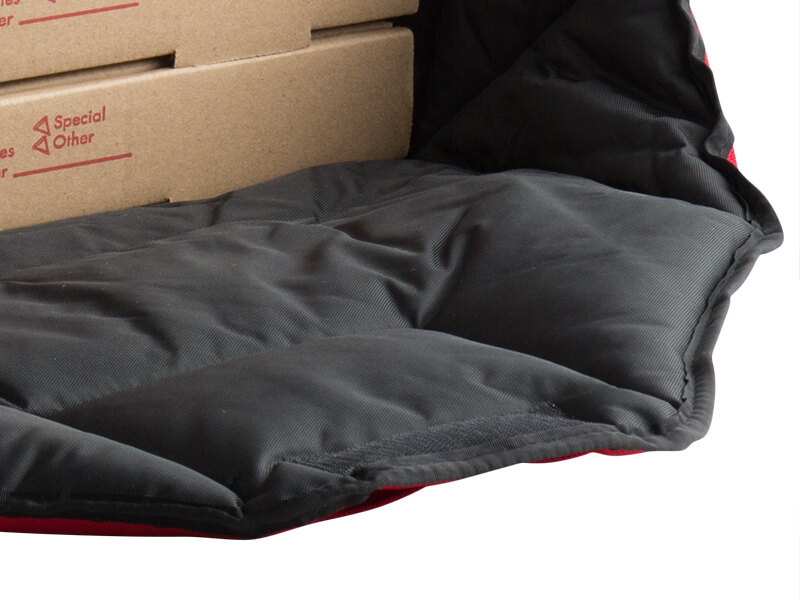 Nice material on this 2-18 inch pizza bag. Well balanced bad, with material thick enough not to fold if carrying smaller pizzas. Used 3 14’s pizzas and 20 minutes later the pizzas were still hot to touch. Good pizza bags, will buy again.