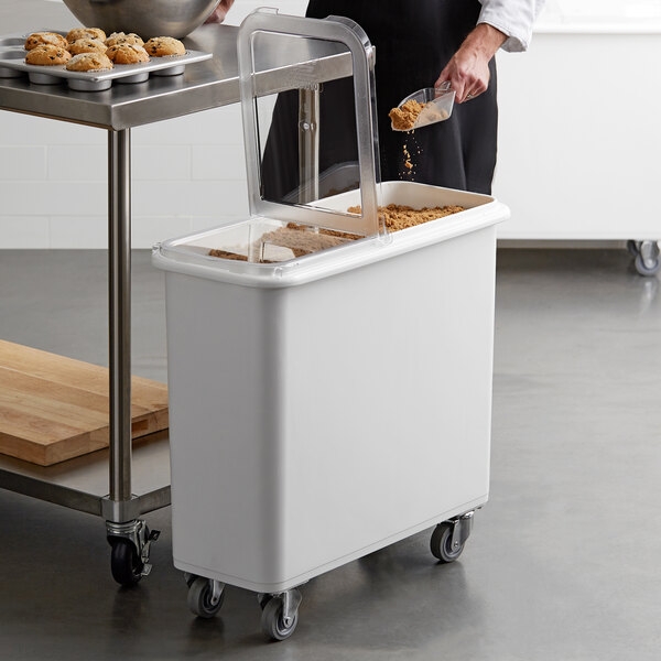 We use these in our warehouse to store raw shea, different salts, and a variety of other things. The lid slides on and off easily while keeping the product fresh. It's super easy to move since it has wheels.