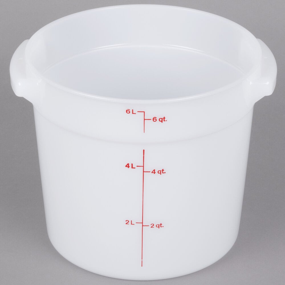 Exceedingly versatile in both size and design, this container is perfect for portioning and storing all your ingredients, toppings, and pre-prepared foods. Simply pair with a compatible lid (sold separately) to keep your foods fresh. Its solid white color makes the container easy to spot in a crowded refrigerator or dry storage room, while a 6 qt. capacity provides users with plenty of storage possibilities!