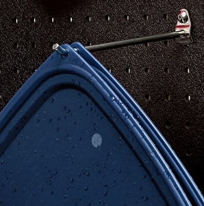 The hanging hole on these new lids from Cambro is really nice for being organized and hygienic in the kitchen. Note that these lids are not completely spill proof, there is still a minor amount of leakage. Probably not an issue for regular use, but just be advised.