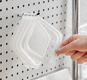 I purchased the 0.5 qt lids to go with the containers. These lids are great - very tight seal, and yet easily opened. I love the hole, which allows me to hang these up. Very helpful when you have so many lids to store!