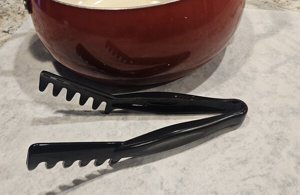 I really enjoy the design of the Cambro Lugano 8" Black Angled Plastic Spaghetti Tong. I have found that the angled tongs are a lot easier to grip spaghetti than the traditional pasta fork. It is well made and sturdy.