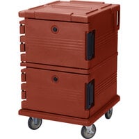 Cambro UPC800SP402 Ultra Camcart® Brick Red Insulated Food Pan Carrier with Heavy-Duty Casters and Security Package - Holds 12 Pans