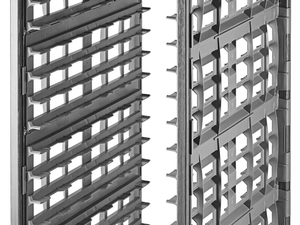 Made from a strong, virtually unbreakable, composite plastic, this pan rack is an excellent alternative to your typical metal bun racks. This plastic material will 100% not rust or corrode over time so you can count on your investment to last in your business.