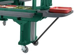 For easy and convenient self-service in your school or venue, this green Versa food bar is an ideal choice. Featuring a durable, all-weather design, the bar is lowered from the standard height to 55 3/4" high, providing easy access for all of your patrons or students. Plus, it accommodates up to 4 full size food pans, making it great for limited menus, side dishes, or for pairing with a second food bar (sold separately) for greater variety. After the meal, the bar easily folds down and fits through standard doorways, rolling on 6" casters and easily maneuvered with its molded-in handles.