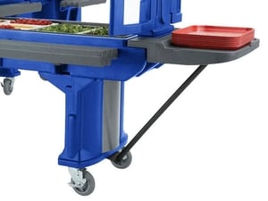 For easy and convenient self-service in your school or venue, this blue Versa food / salad bar is an ideal choice. Featuring a durable, all-weather design, the bar is lowered from the standard height to 55 3/4" high, providing easy access for all of your patrons or students. Plus, it accommodates up to 4 full size food pans, making it great for limited menus, side dishes, or for pairing with a second food bar (sold separately) for greater variety. After the meal, the bar easily folds down and fits through standard doorways, rolling on heavy-duty casters and easily maneuvered with its molded-in handles.