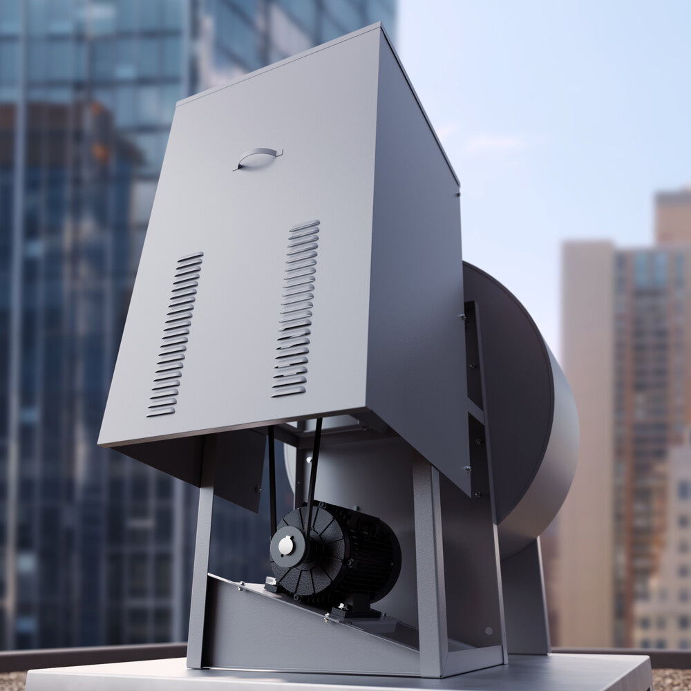 Built with continuously welded 16 gauge or heavier steel blower housing, a vinyl shaft seal, and heavy-duty pillow block ball bearings that optimize mechanical stability and reduce wear over time, this unit is suitable for long-term use in demanding industrial and commercial environments, protecting the motor while maximizing energy efficiency. For added convenience, the drive compartment cover protects the unit against weather damage, dust, and debris.