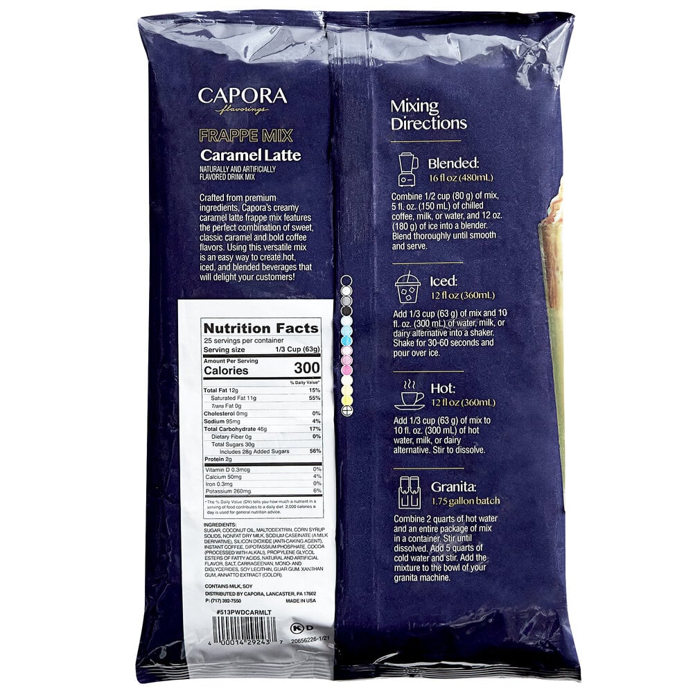 We searched and searched for a product to make our blended frappes have a true pure taste of mocha and Capora is the winner! The mocha does not overpower the drink but is a sweet, bold and creamy dream drink. We freeze an espresso shot into a puck and add it to the blender with this product for the perfectly wonderful espresso frappe.