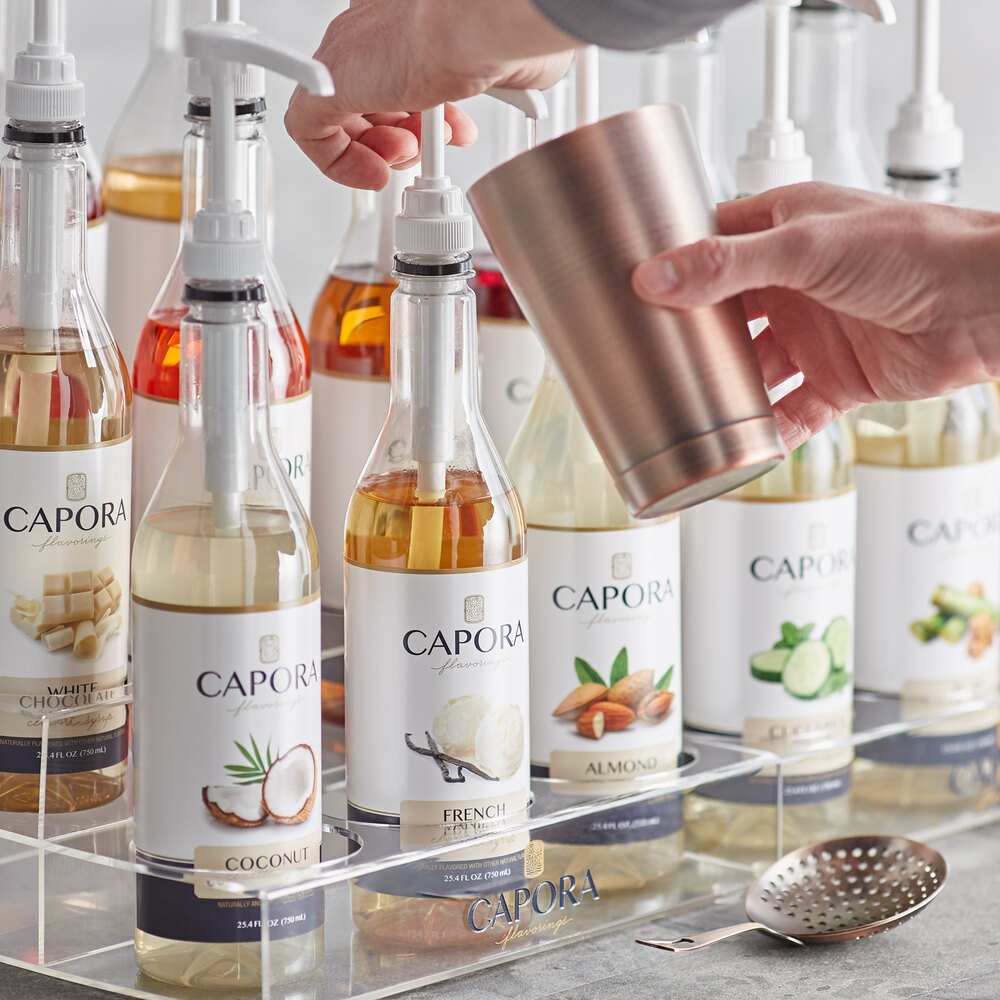 Offering high-end flavoring syrups at a fraction of the price of national brands, Capora makes it easy to cater to all of your customers' tastes. With a wide variety of premium flavoring syrups, their line offers something for every palate and every application. Capora's collection ranges from timeless classics to delightful innovations - perfect for adding a splash of flavor to hot beverages, cocktails, smoothies, and even decadent desserts. Explore all Capora has to offer to keep your establishment well-stocked with the finest flavors at an affordable price.