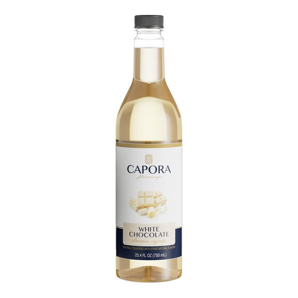 Packaged in a unique bottle with a stylish design, this Capora white chocolate flavoring syrup has an attractive shelf presence that makes it a great addition to your restaurant, bar, coffee shop, or cafe. It can be paired with a compatible pump (sold separately) for quick, efficient service during peak serving hours. You can even store the bottle in one of the companion Capora racks (sold separately) to create an eye-catching display. This ready-to-use syrup mixes thoroughly and evenly with both hot and cold beverages.