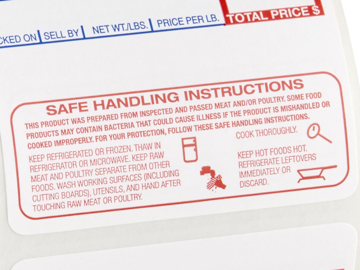 - Printed with "Safe Handling" instructions