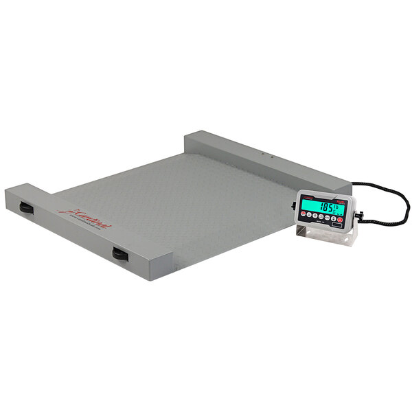 Easily weigh large, heavy loads in your receiving area with the Cardinal Detecto RW-1000 1000 lb. Run-A-Weigh receiving scale! This scale features a built-in ramp, handle, and self-aligning feet so that you can start using it the moment it arrives at your business. The large 24 1/2" x 30" weighing platform is great for weighing barrels, drums, and small crates, while a set of wheels is included for transportation. The digital indicator includes a large LCD display so you can easily read weights, and the keypad includes zero, tare, gross, and net functions to give you optimum control. And thanks to its powder coated steel construction, you can be sure this scale is built for maximum durability and longevity.