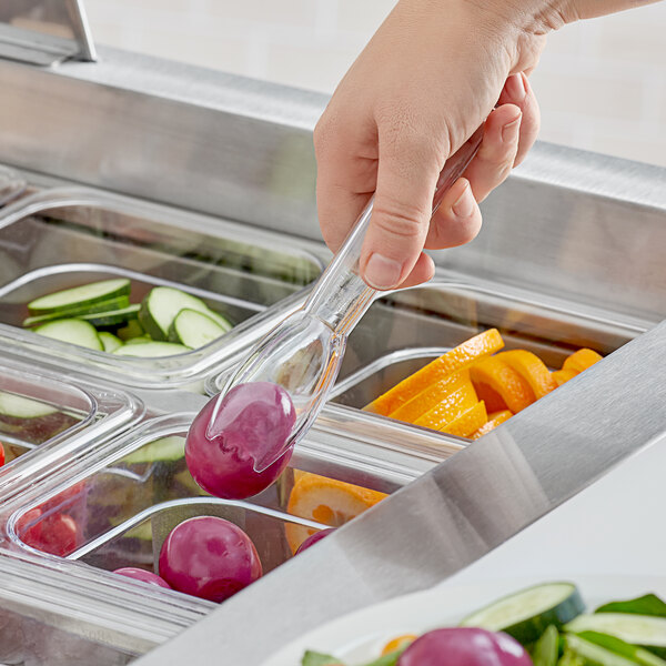 The clear construction helps you create a color coded system within your establishment to avoid cross-contamination. Add organization and efficiency to your buffet service with these Carlisle Carly tongs!
