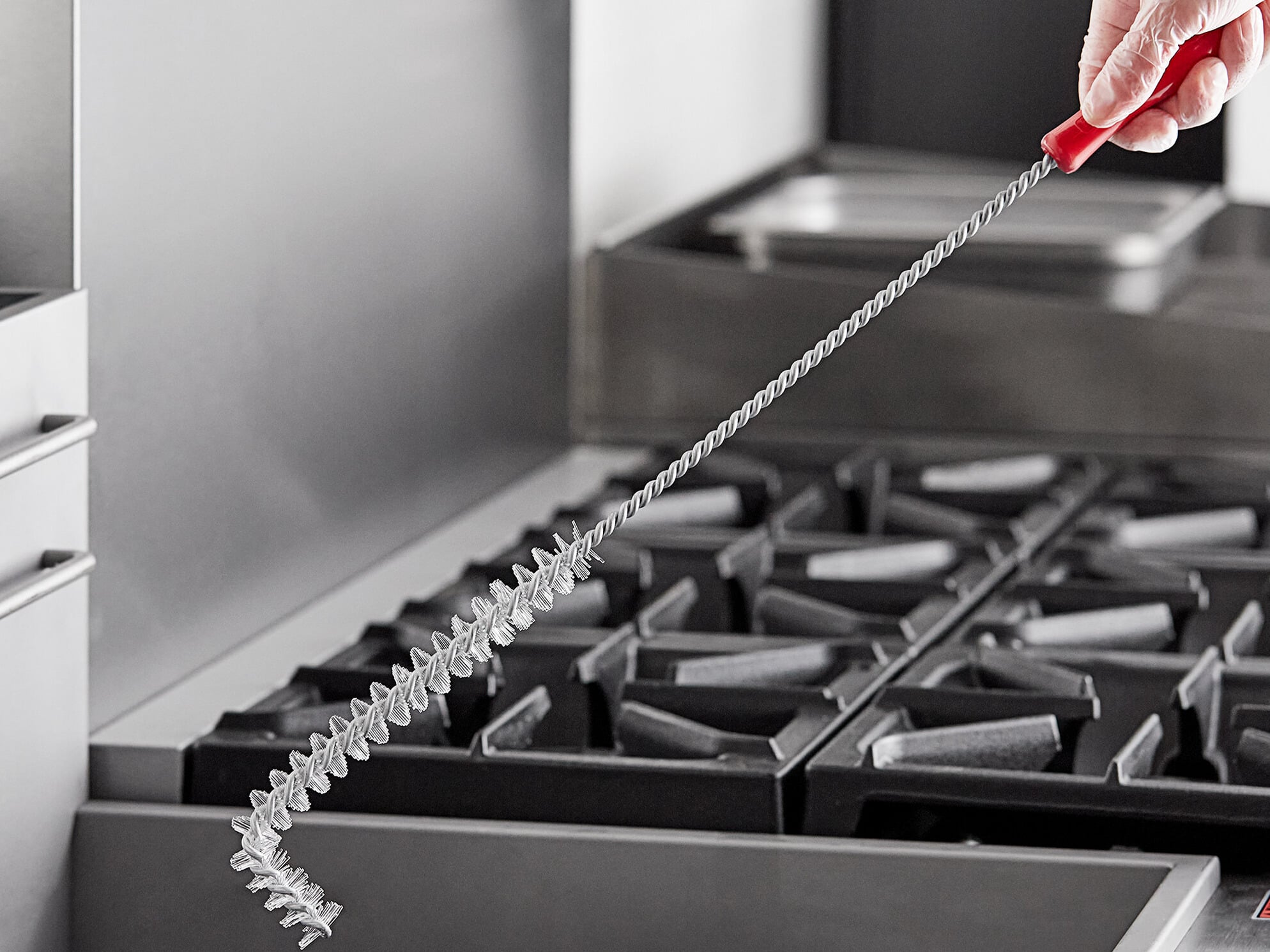 These brushes are perfect for scrubbing behind the coils of our pressure fryers. They are also durable enough to stand up to several cleanings a day. We will be ordering these again in the future.