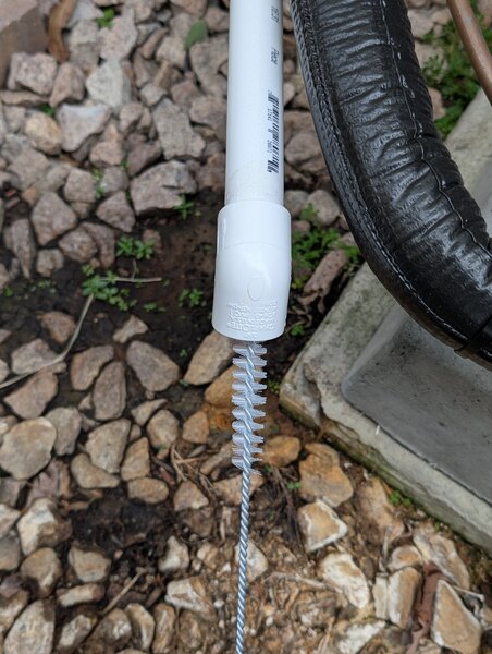 Brush works good on tubing. Although it makes sense to have thicker wire in the core it does make it difficult to bend. This would not be as much of an issue however the bristles are short making this useful for only small diameter pipes where you would want more flexibility.
