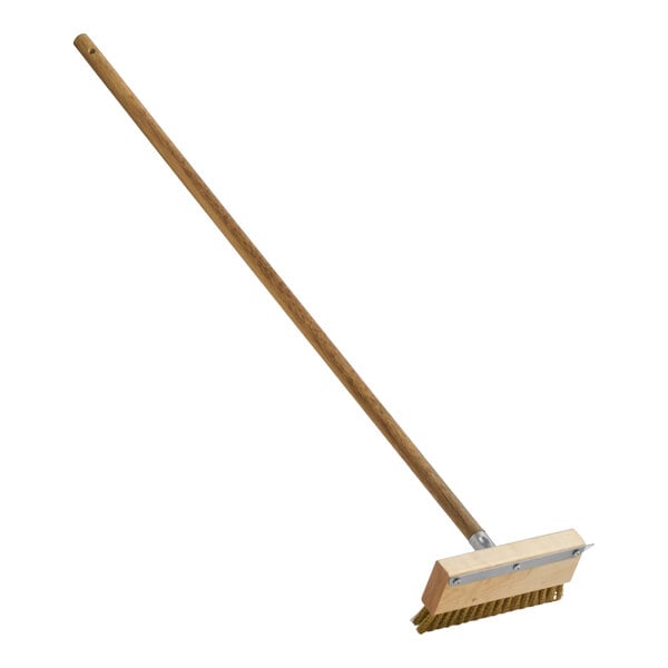 This brush is especially easy to use thanks to its 42" handle, which allows you to reach into deep areas, as well as keep your distance from potentially dangerous high heat ovens. The brass bristles are durable and rust-resistant, but are softer than stainless steel or carbon steel so they won't scratch your equipment. The handle and head are made of sturdy wood to ensure that this brush will provide long-lasting use in your commercial establishment. Whether you need to clean a grill in your restaurant, bar, or school, this grill cleaning brush will make it shine like new.