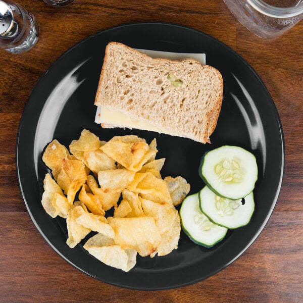 Made from shatter- and break-resistant melamine, this plate promotes a safe work environment in your high-volume restaurant, bar, cafeteria, or outdoor venue. Plus, with the added benefit of quick and easy cleanup, your staff can maximize their productivity at the end of meal service to efficiently clean the kitchen and dining area.