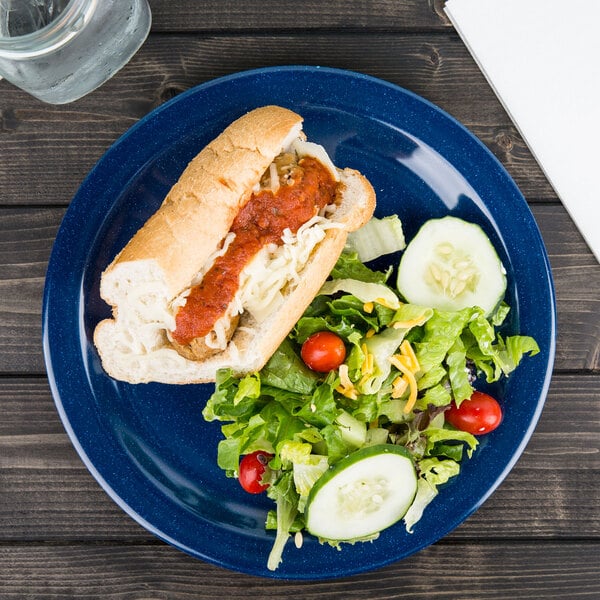 Made from shatter- and break-resistant melamine, this plate promotes a safe work environment in your high-volume restaurant, bar, cafeteria, or outdoor venue. Plus, with the added benefit of quick and easy cleanup, your staff can maximize their productivity at the end of meal service to efficiently clean the kitchen and dining area.