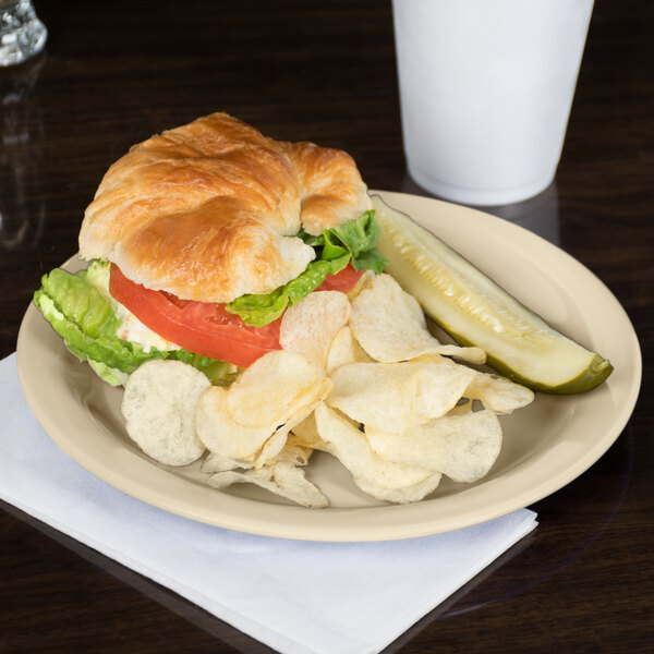 The original industry standard for melamine dinnerware, this Dallas Ware product offers superior stain and scratch resistance for long-lasting use. Saucy foods won't leave lasting impressions on this plate, and guests can easily cut into their meal without creating knife-marks. Use this Dallas Ware plate to serve your offerings in convenient style.