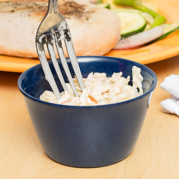 The original industry standard for melamine dinnerware, this Dallas Ware product offers superior stain and scratch resistance for long-lasting use. Saucy foods won't leave lasting impressions on this cup, and guests can easily cut into their food without creating knife-marks. Use this Dallas Ware bouillon cup to serve your offerings in convenient style.