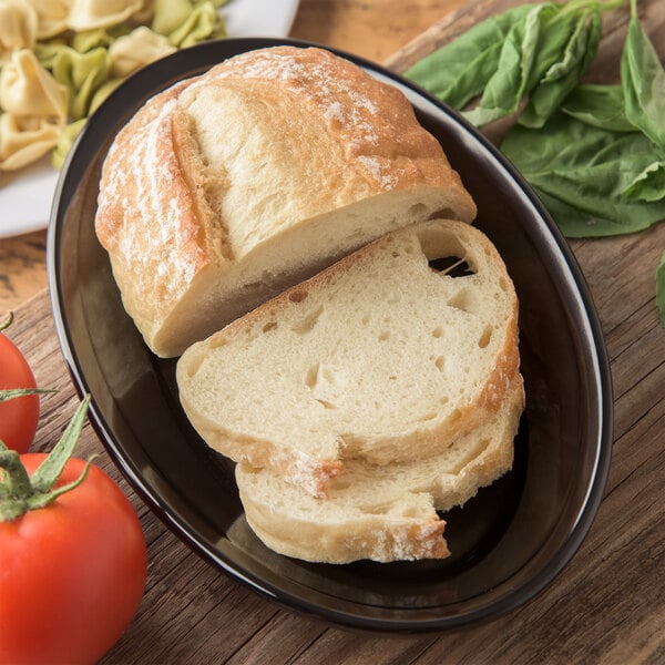 With a striking black color, this Carlisle oval platter is ideal for serving entrees like pasta or grilled sandwiches with confidence! With a durable construction, this plate is great for buffets, restaurants, and catered events. The black coloring draws attention to the presentation and provides a sophisticated background.
