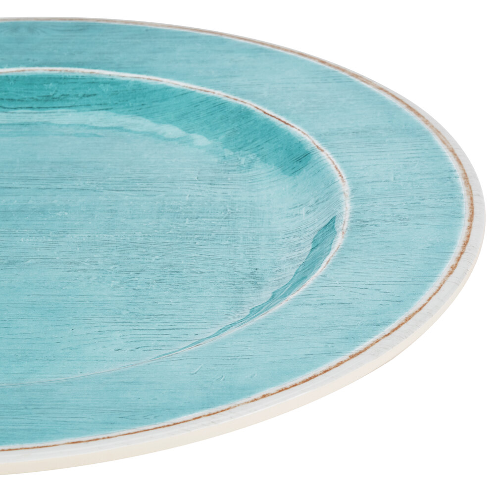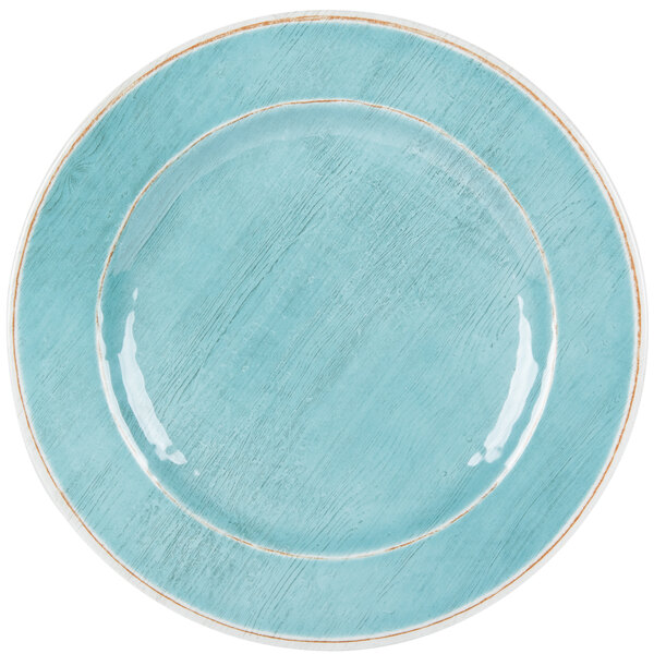 Use this Carlisle 6400115 Grove 11" aqua round melamine dinner plate to direct all eyes to the center of your plated entrees.