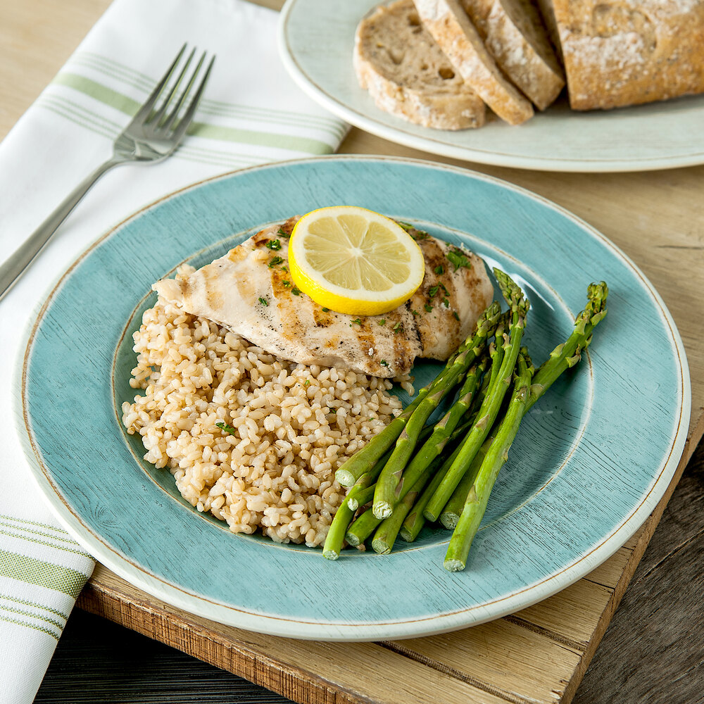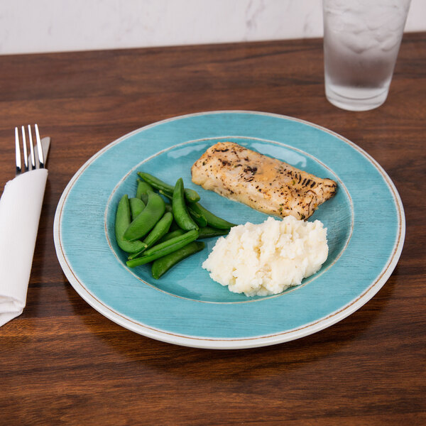 The gentle striped design creates movement and interest while its aqua hue accents the rest of your table setting. Dishwasher safe, this plate can easily be cleaned so that you can immediately reuse it. Perfect for a wide array of entrees, this plate is a great addition to your establishment.