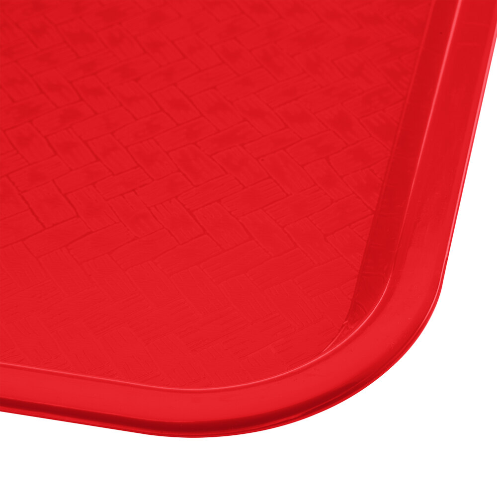 This lightweight tray is ideal for use at your cafeteria, concession stand, snack bar, or quick-service restaurant. Its rectangular shape and 12" x 16" surface make it perfect for holding multiple food items with ease. The attractive red color fits in with any decor, or mix and match with other colors from this collection for a dynamic display.