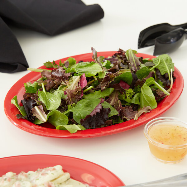 Perfect for service in schools, retirements communities, healthcare facilities, or casual dining restaurants, this platter is a durable addition to your establishment. Thanks to its 12" x 9" x 1 3/16" size, this platter is ideal for serving shareable appetizers, large salads, and pasta. Part of the Kingline collection, this platter withstands the daily rigors of a high-volume kitchen.