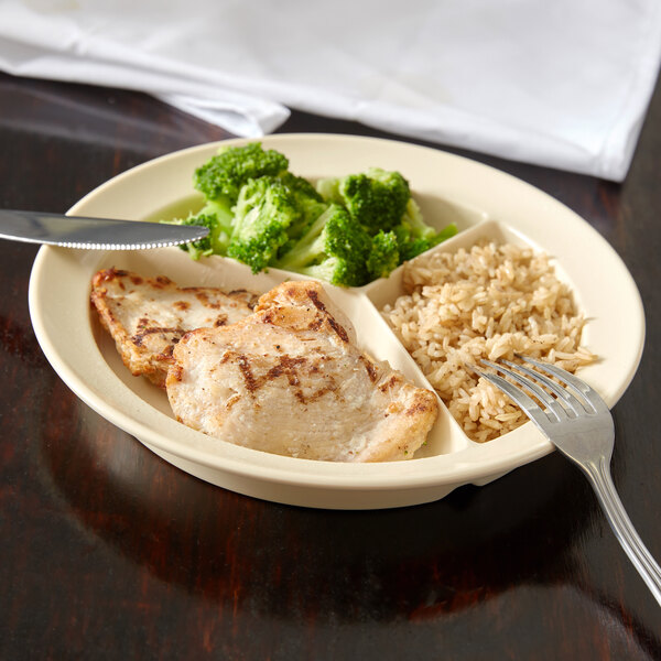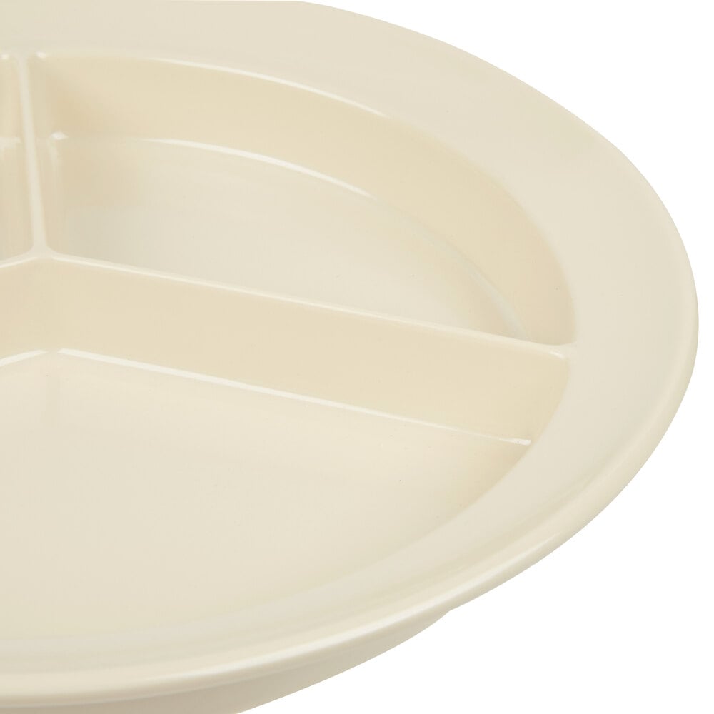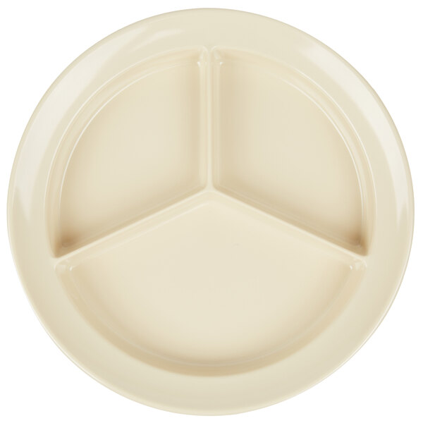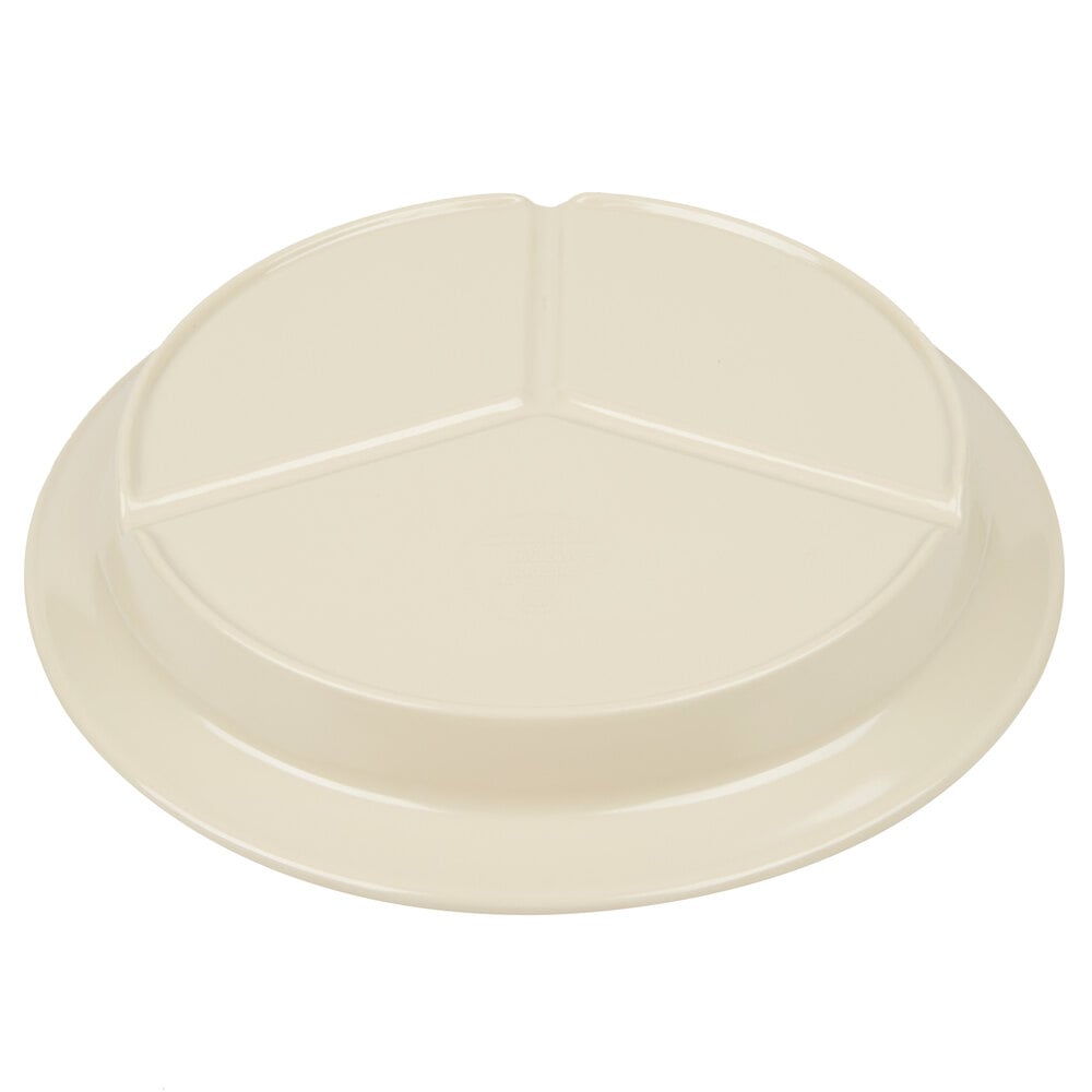 Perfect for service in schools, retirements communities, healthcare facilities, or casual dining restaurants, this plate is a durable addition to your establishment. Thanks to its 8 3/4" size and 3 compartments, it's ideal for serving an entree with two sides. Part of the Kingline collection, this plate withstands the daily rigors of a high volume kitchen.
