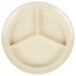 Carlisle Kingline 8 and 3/4 inch white three-compartment plate comes in a 12 case and it's perfect for banquet halls and Restaurant catering off site