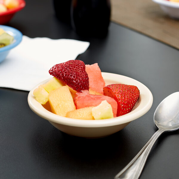 Perfect for service in schools, retirements communities, healthcare facilities, or casual dining restaurants, this bowl is a durable addition to your establishment. Thanks to its 4.75 oz. size, it's the ideal option for serving appetizers, small salads, fruit, or oatmeal. Part of the Kingline collection, this bowl withstands the daily rigors of a high-volume kitchen.