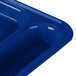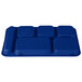 Perfect for schools, hospitals, or nursing homes, this Carlisle P614R14 10" x 14" blue tray provides 6 separate compartments for a well-balanced dining experience. The 6 compartments with a combination of three smaller upper compartments, two larger lower compartments, and a flatware holder on the right side hold a standard government "Type A" lunch. This tray also boasts a right-handed design to accommodate right-handed users.