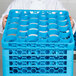 Perfect for tumblers and glasses up to 2 7/8" in diameter, this open rack allows for superior cleaning, rinsing, and drying. This 30-compartment glass rack extender is conveniently color-coded in bright blue for easy rack size or glassware identification. It is designed to add an extra 1 1/2" of additional height to your glass rack to assist in obtaining the proper depth for your taller glassware. The Sure-Lock extenders easily snap on. This glass rack extender will make your warewashing easier and more efficient than ever before.