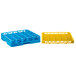The 3 1/2" square compartments are the perfect size for large diameter glasses like red wine stemware, brandy glasses, goblets, and rocks glasses. The open profile allows for superior cleaning, rinsing, and drying. Since there are no flat surfaces, water and food particles can't get trapped inside the rack, ensuring proper draining. This 25-compartment glass rack is conveniently color-coded for easy rack size or glassware identification, and it comes with a single yellow extender, designed to add an extra 1 1/2" of additional height per extender to your glass rack to assist in obtaining the proper depth for your taller glassware. This glass rack and extender set will make warewashing easier and more efficient than ever before since extenders can be easily snapped on.