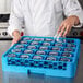 Streamline your glassware washing with the Carlisle RG2514 OptiClean 25-compartment glass rack! Made with a reinforced polypropylene material, this glass rack is sturdy and durable, ideal for years of heavy use. Positive stacking from either direction makes this glass rack compatible with all major competitors. The textured surface resists scratches to keep your racks looking new, while also providing a secure grip. The textured surface, paired with Comfort Curve handles that won't pinch fingers, allows for easy carrying by your staff. Best of all, the handles are molded into all four sides, for simple dish machine loading, without needing to rotate racks.