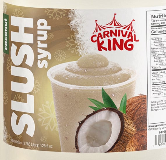 Carnival King offers great flavors at a great value, and this sweet coconut flavor enhances the appearance, color, and taste of your icy cold drinks. The colors and flavors are sure to boost impulse sales. Perfect for fairs, stadiums, or other special events, this Carnival King slushy syrup helps you quickly and easily prepare your customers' favorite cold summertime treats at an affordable price!