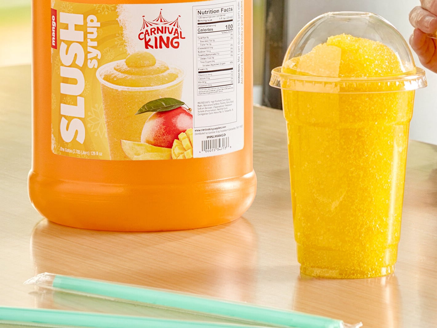 Guests will start craving your colorful slushies as soon as they see them at your carnival cart or concession stand. Keep up with the demand for these refreshing treats with this Carnival King 1 gallon slushy syrup! With the large amount of servings per container, your venue will be in good supply. Simply pair it with a compatible pump for fast, efficient service.