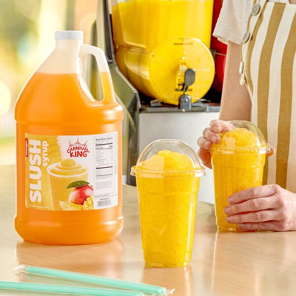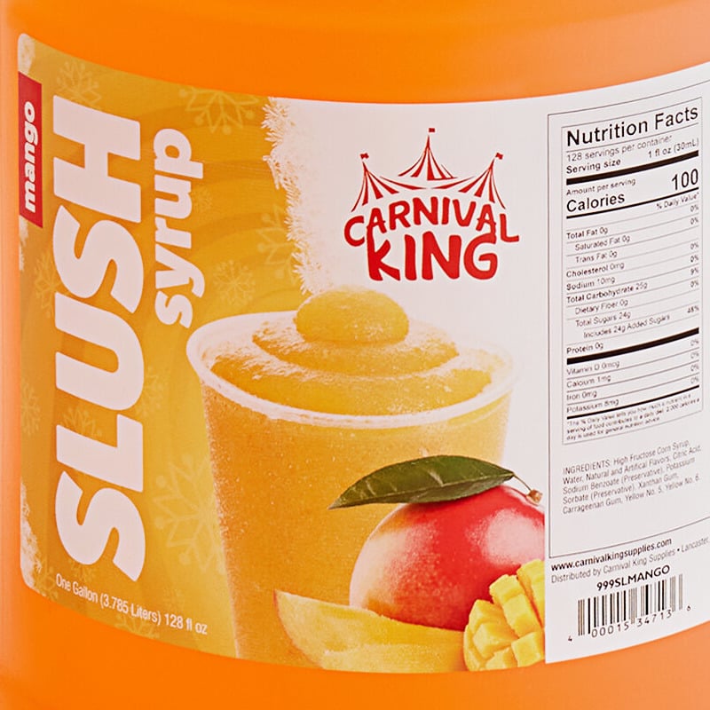Carnival King offers great flavors at a great value, and this tropical mango flavor enhances the appearance, color, and taste of your icy cold drinks. The colors and flavors are sure to boost impulse sales. Perfect for fairs, stadiums, or other special events, this Carnival King slushy syrup helps you quickly and easily prepare your customers' favorite cold summertime treats at an affordable price!