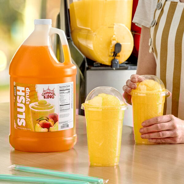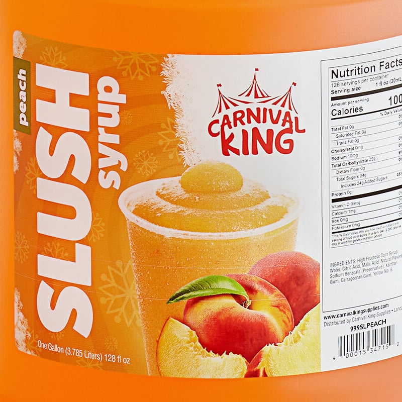 Carnival King offers great flavors at a great value, and this juicy, ripe peach flavor enhances the appearance, color, and taste of your icy cold drinks. The colors and flavors are sure to boost impulse sales. Perfect for fairs, stadiums, or other special events, this Carnival King slushy syrup helps you quickly and easily prepare your customers' favorite cold summertime treats at an affordable price!