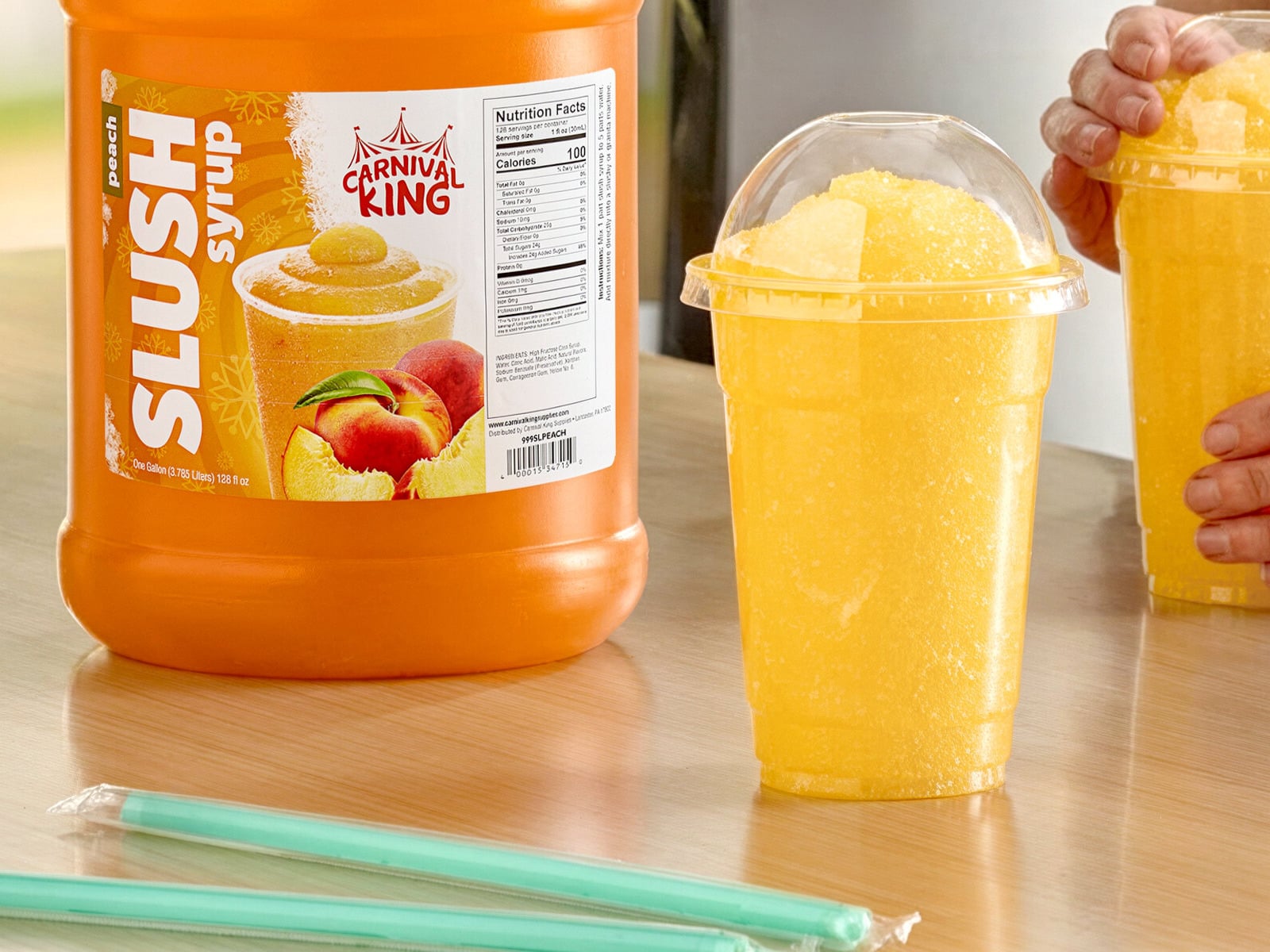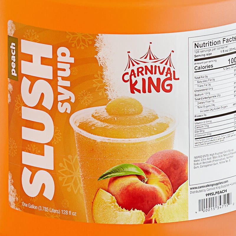 Carnival King offers great flavors at a great value, and this juicy, ripe peach flavor enhances the appearance, color, and taste of your icy cold drinks. The colors and flavors are sure to boost impulse sales. Perfect for fairs, stadiums, or other special events, this Carnival King slushy syrup helps you quickly and easily prepare your customers' favorite cold summertime treats at an affordable price!