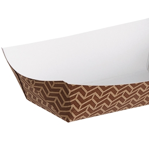 Serve a wide variety of tasty finger foods, freshly made sides, and signature snacks with this Carnival King #100 1 lb. cornerstone paper food tray.